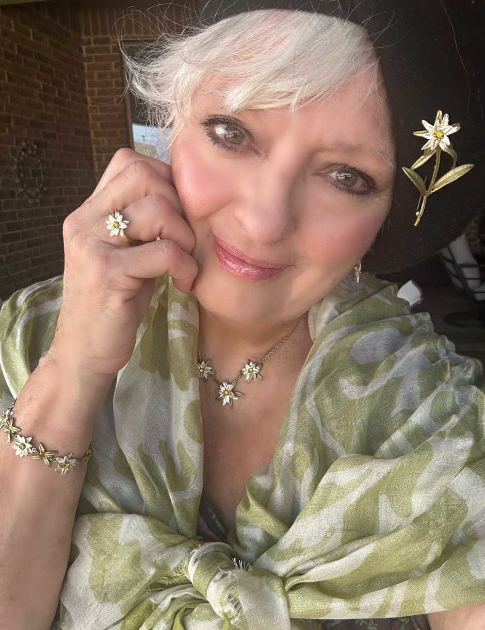 Edelweiss, the national flower of Austria and a symbol of the Alps, is protected under the law to keep it safe from extinction. While it may seem harmless for tourists and sightseers to pick this cherished flower in their travels, over-picking eventually leaves the plant unable to grow. Edelweiss also holds the meaning of deep devotion due to its ability to withstand the harshest weather conditions. Not only does this flower have significant meaning in history, but in media as well, specifically in the classic movie The Sound of Music. Michael is honored to collaborate with actress Angela Cartwright, who portrayed Brigitta von Trapp in the beloved film The Sound of Music, on this beautiful collection celebrating its sixtieth anniversary.